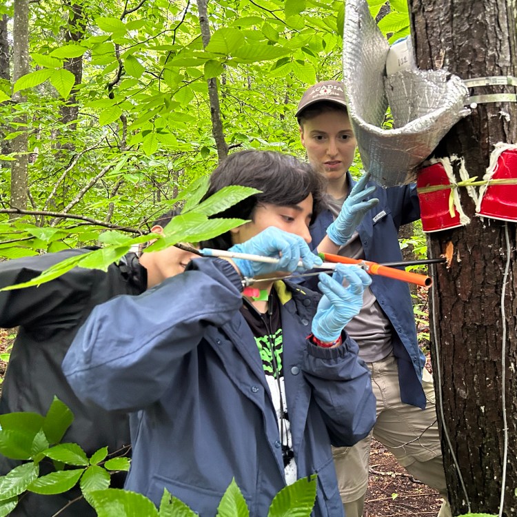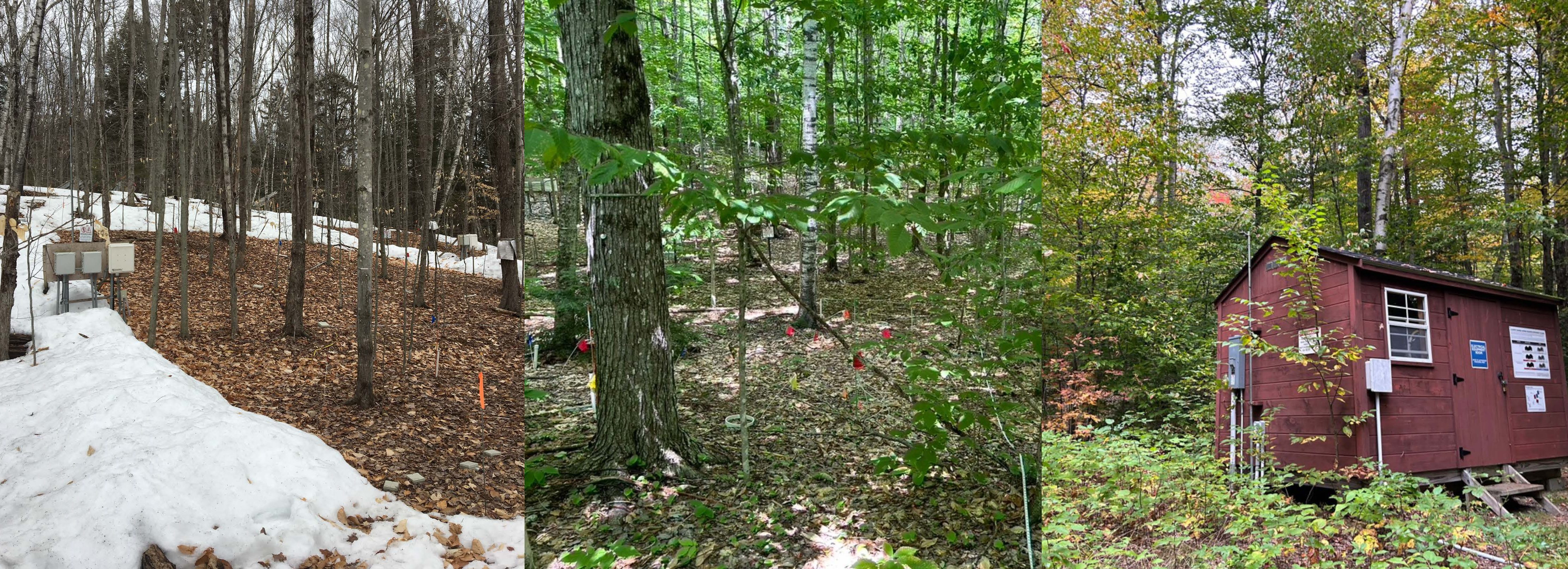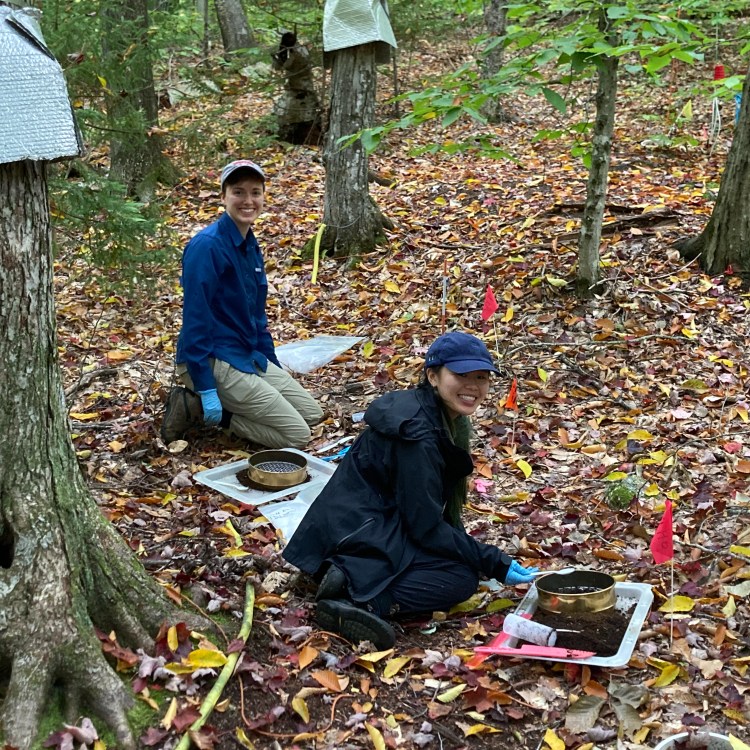 At the Climate Change Across Seasons Experiment (CCASE), I study the impacts of year-round climate change on aboveground carbon sequestration and below-ground root growth rates.